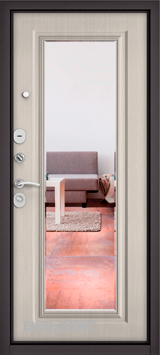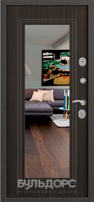 Данная модель дверей с зеркалом от Бульдорс Mass 90 S9-140 отлично сочетает в себе прямые и пластичные линии в декоре внутренней панели необычным образом сочетая металл, древесину и зеркало